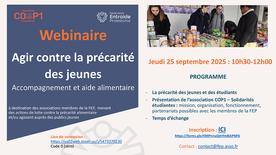 La FEP organise un webinaire à destination des associations menant des actions de lutte contre la précarité alimentaire et/ou agissant auprès des publics jeunes, sur le thème :