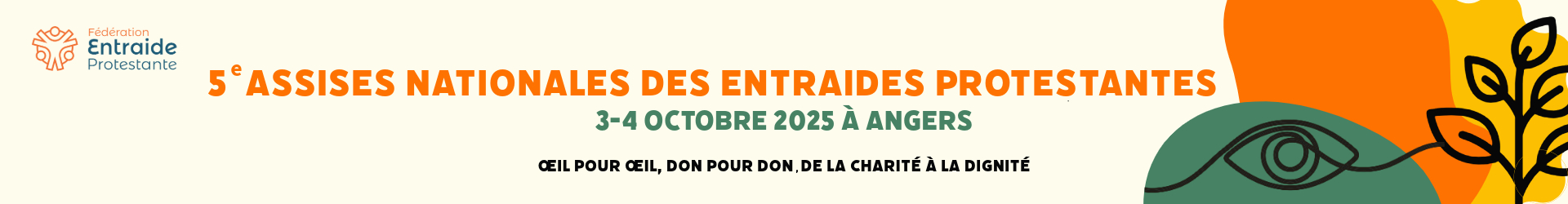 Les 3 et 4 octobre 2025, les Assises nationales des Entraides protestantes ont rassemblé 120 personnes, salariées et bénévoles d'association, à Angers. Le thème « Œil pour œil, don pour don. De la charité à la dignité » a résonné tout au long de ces 24 heures, interrogeant la question du don, la réciprocité du don, ce qui se joue dans la rencontre.